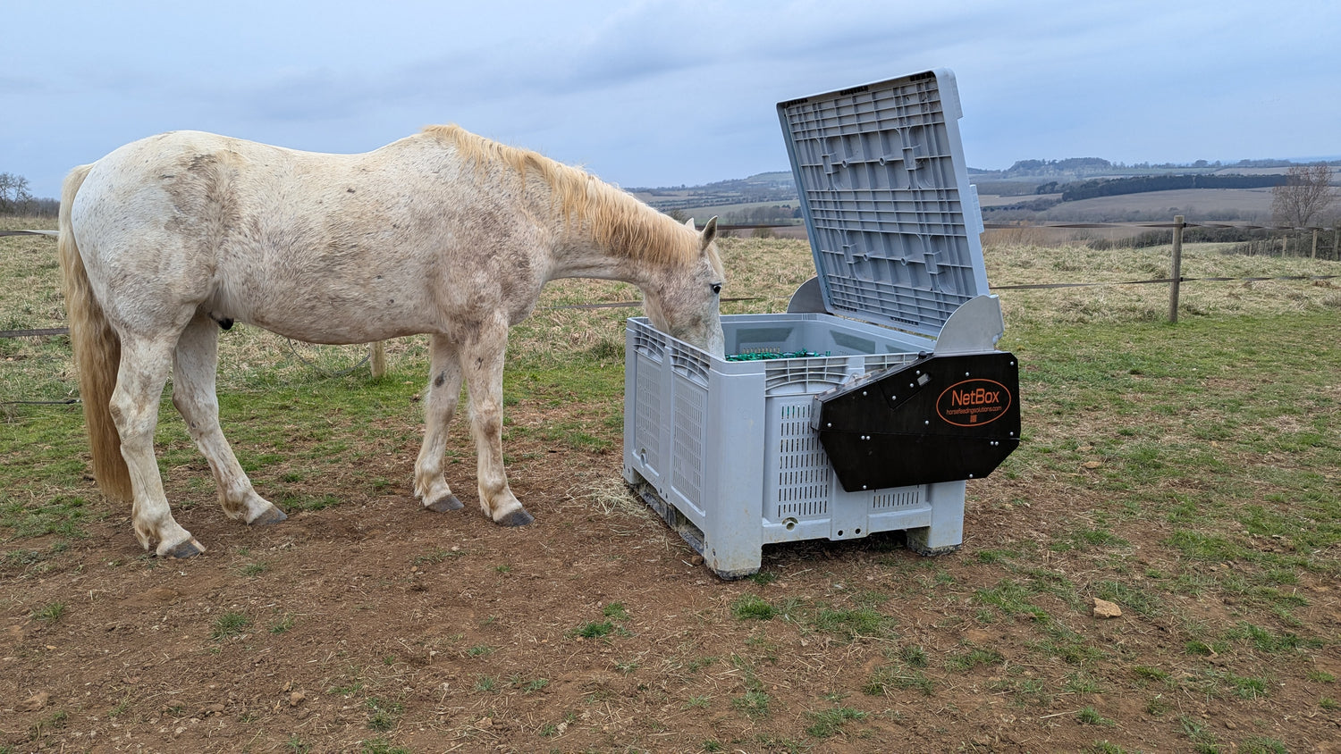 If you need control over when your horses can access their hay, there is a NetBox with a lid that automatically opens and closes.
